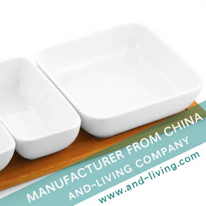 SET OF 4 PORCELAIN DISH WITH BAMBOO TRAY